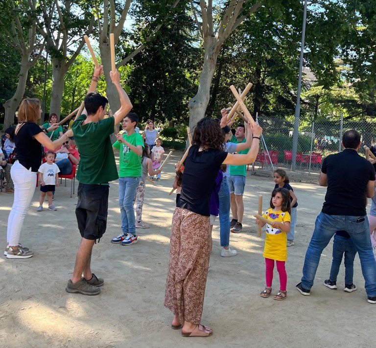 Entre otras actividades, por la tarde se ha realizado en el escenario de la Glorieta en los Campos Elíseos un taller de Ball de Bastons, a cargo de la Colla Bastonera del Pla de l'Aigua. También, una sesión de rap con colectivos de todo el territorio catalán con “Raplegats x Freestyle Ponent”, donde han realizado una exhibición de destreza poética improvisada en directo. El acto ha sido organizado por La Sirollada.