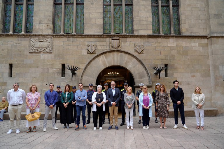 El alcalde de Lleida, Fèlix Larrosa, y varios concejales y concejalas de la Corporación Municipal, representantes de cuerpos de seguridad y de entidades de la ciudad han participado en la concentración en la plaza Paeria