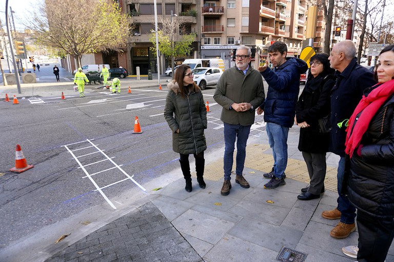 El alcalde, Fèlix Larrosa, ha visitado hoy las tareas de señalización horizontal de este punto y ha señalado que se trata de una actuación muy pedida por el vecindario, y que tiene como objetivo priorizar a los peatones.