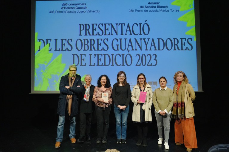 El Teatre Municipal de l’Escorxador ha acogido esta tarde la presentación de las obras galardonadas con el 40º Premio de Ensayo Josep Vallverdú y del 28º Premio de Poesía Màrius Torres en la última edición de los Premios Literarios, a cargo de sus autoras, Helena Guasch y Sandra Blanch, respectivamente. La concejala de Cultura, Pilar Bosch, ha asistido al acto, que comienza una semana literaria que culminará el viernes, 15 de noviembre, con el veredicto y la entrega de los Premios Literarios de la edición 2024.