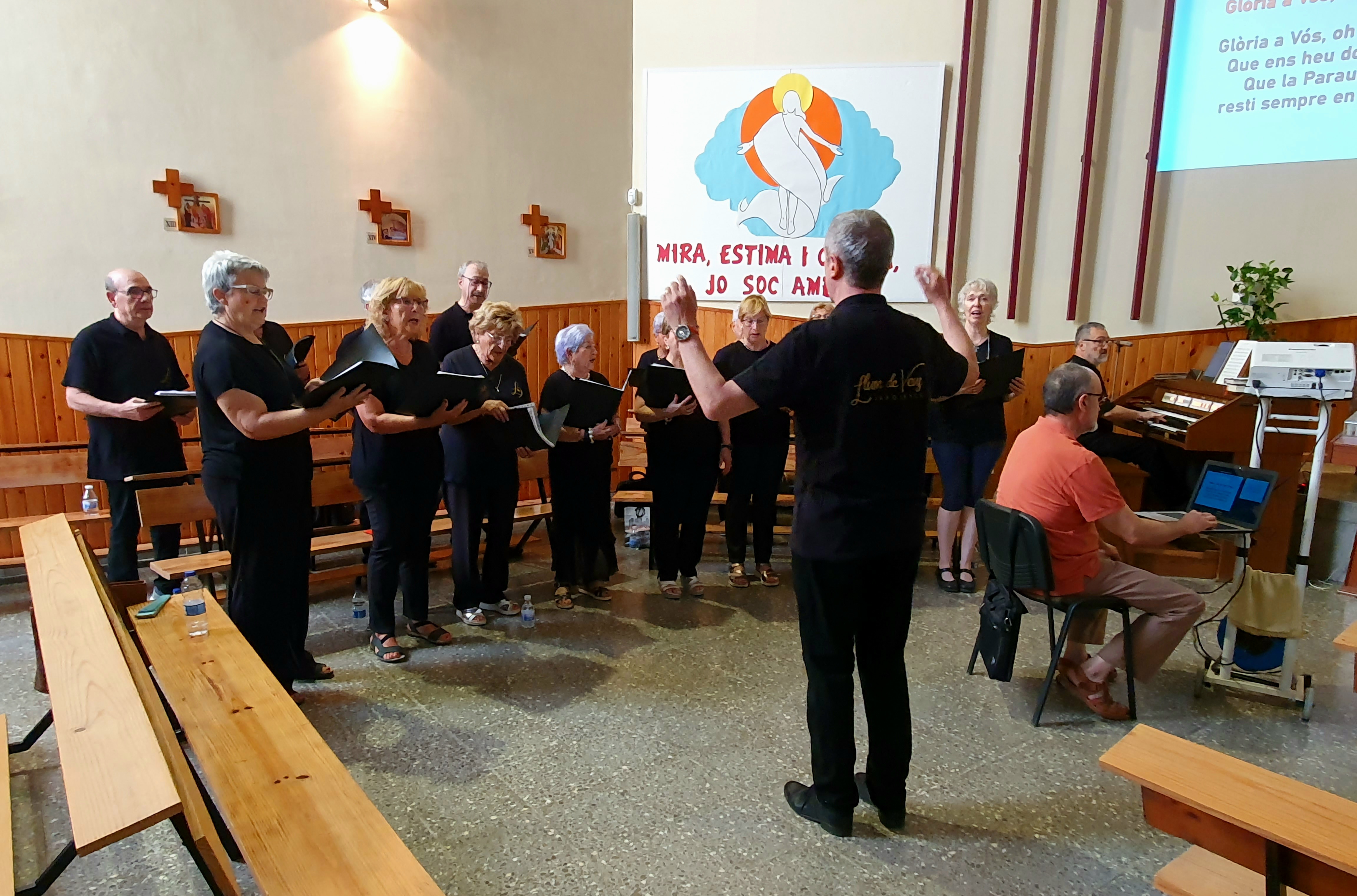 Antes de celebrar el homenaje, se ha llevado a cabo un año más la misa cantada a cargo de la Coral Luz de Voces del barrio y dirigida por Agustí Ardanuy en la Parroquia del Santísimo Salvador.
