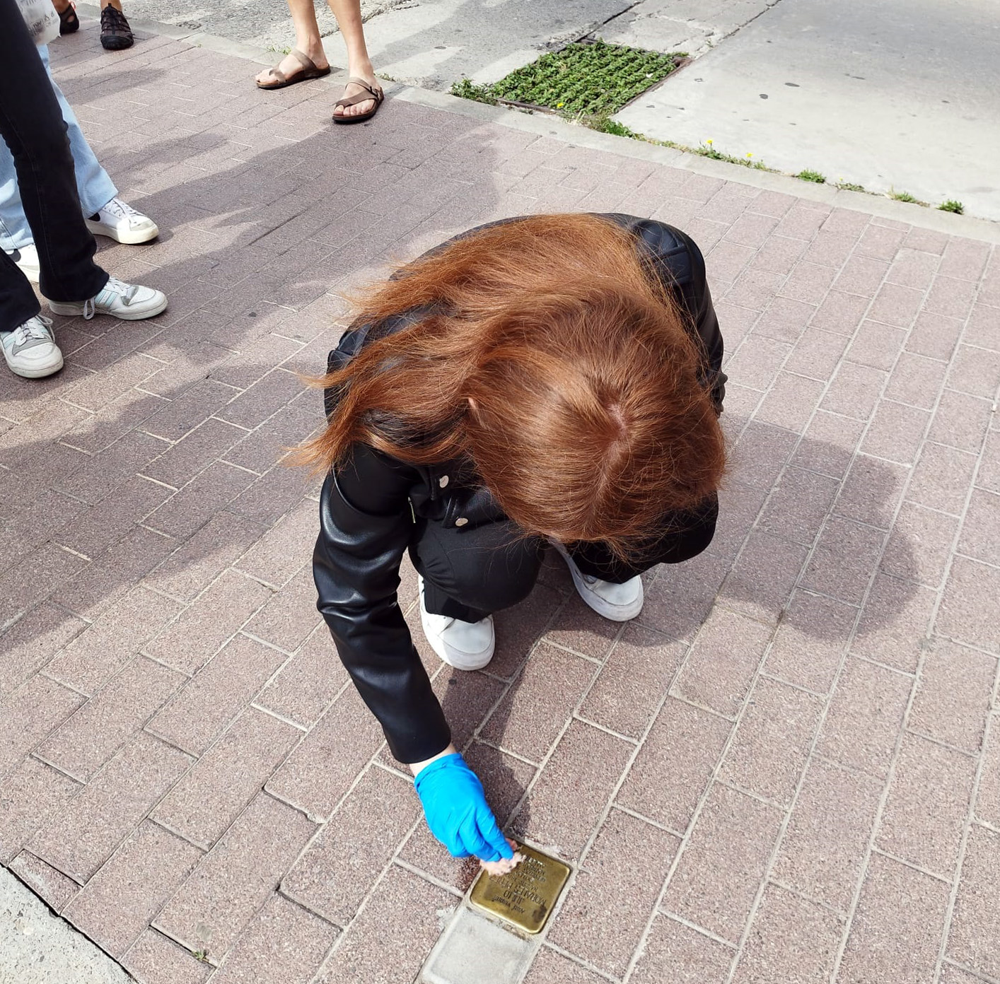 El Proyecto Stolpersteine permite instalar los adoquines creados por el artista alemán, Gunter Demnig, en diferentes puntos de la ciudad, específicamente frente al último domicilio conocido donde vivió una persona deportada. Los peatones, al encontrarse con los adoquines, pueden leer el texto escrito sobre la plancha de bronce que contiene escritas algunos datos y fechas de la persona deportada. El proyecto parte de la base de que al hacer la inclinación por leer es también se está haciendo una señal de respeto hacia las víctimas.