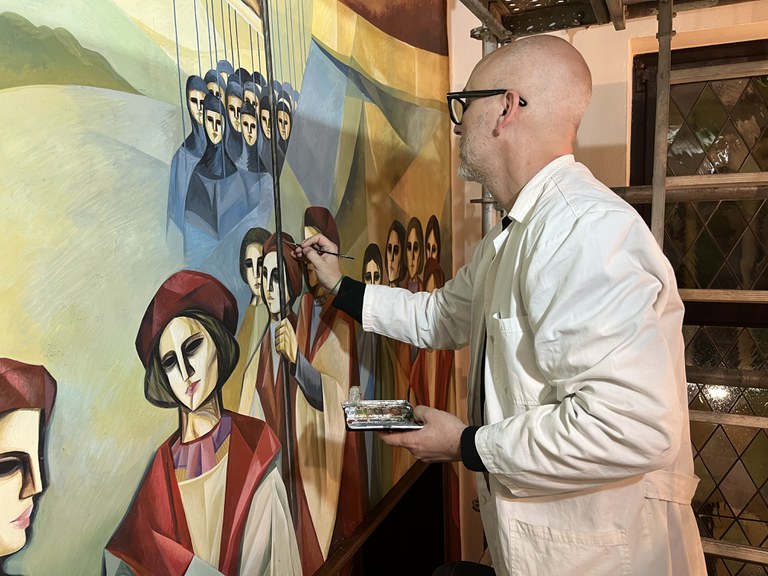 Restauración del gran mural de Víctor Pérez Pallarès en la antesala del Salón de Plenos