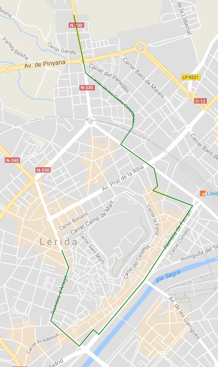 No se podrá circular en vehículo particular por el eje central de la ciudad, formado por calles Avenida de Balmes, Rambla de Aragó y Avenida de Catalunya entre las 12 y las 13.30 horas. Una buena alternativa para realizar el trayecto entre la zona Alta y el centro de la ciudad en esta franja horaria, es circular por el paseo de Ronda, av. Princep de Viana y la calle Anselm Claver.