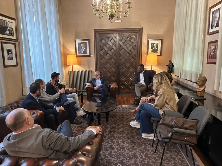 El alcalde Fèlix Larrosa les ha recibido en la Paeria para conocer de primera mano este proyecto de inclusión social a través de la práctica deportiva