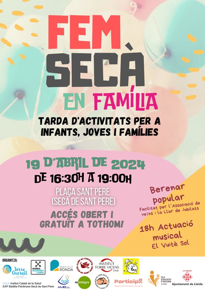 La 3a edición del “FEM SECÀ EN FAMILIA” abre sus puertas a la Semana Cultural del barrio que se llevará a cabo del 22 al 26 de abril con más propuestas comunitarias y abiertas a todo el mundo.