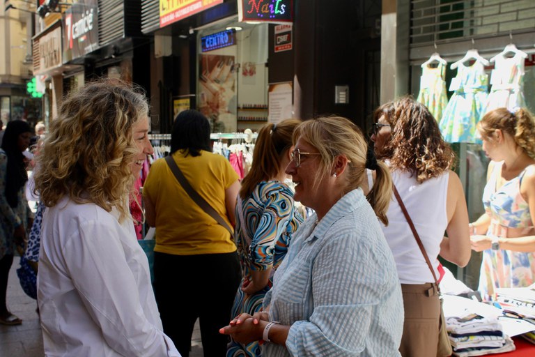 La concejala de Promoción de la Ciudad, Pilar Bosch, ha visitado hoy el primer día de mercadillo de las rebajas en el Eix Comercial de Lleida. El mercadillo sirve para cerrar la temporada de rebajas de verano con una veintena de paradas que sacan su género a la calle desde hoy y hasta el miércoles.