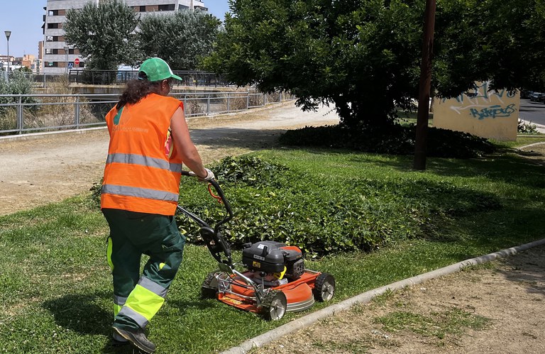Otros trabajos son tareas de limpieza y desbroce en varias calles y en la plaza Víctimas del Terrorismo, Plaza del Agua, Parque de Joan Oró y Plaza Sant Jordi, además de los alcorques de varias calles, incluida la calle Canal y Campamento (acera y paseo junto al canal).