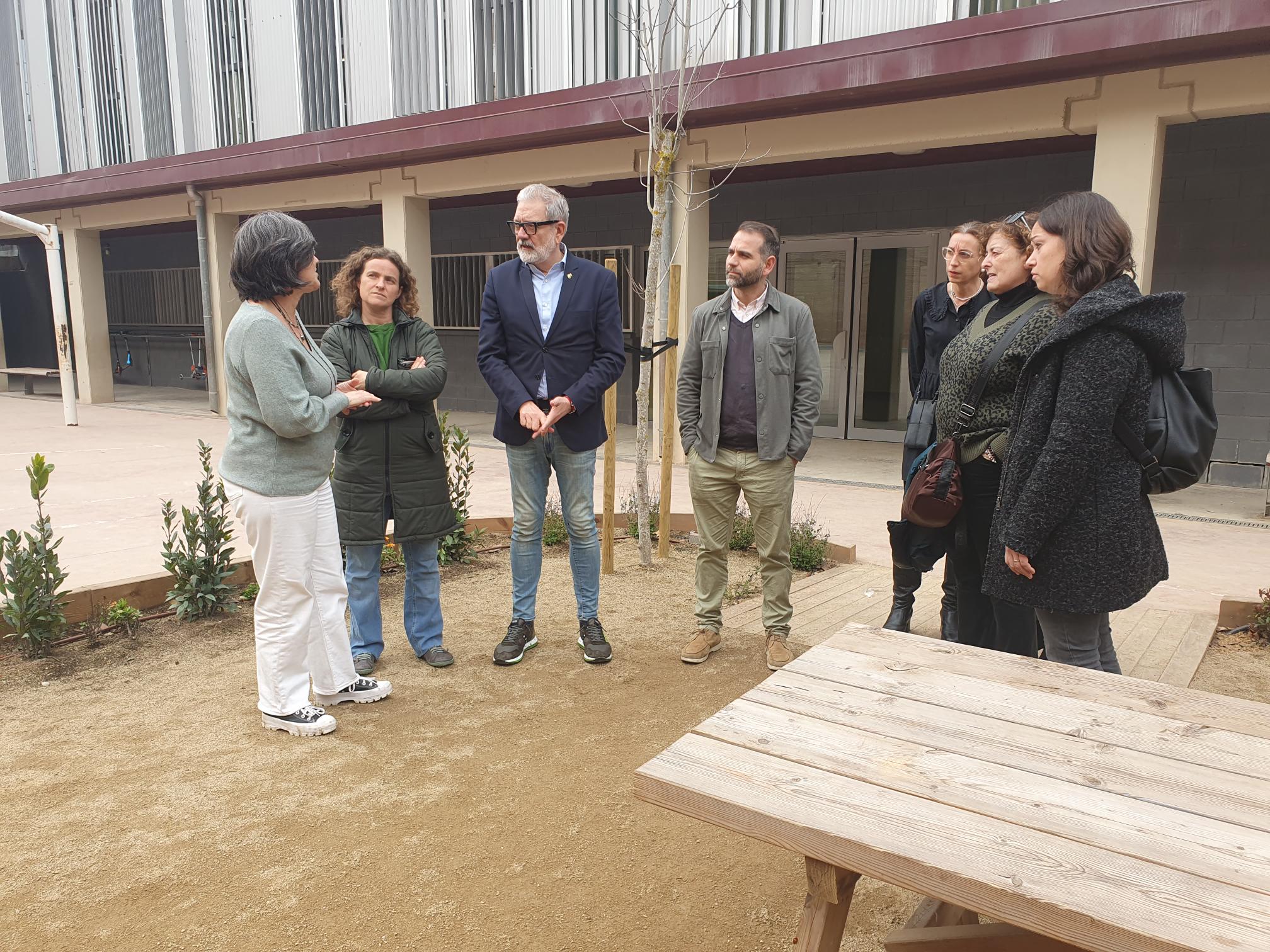 El alcalde de Lleida ha aprovechado para visitar el patio de este centro educativo, que recientemente ha estrenado la renaturalización de este espacio con la plantación de árboles y arbustiva y la construcción de un arenal, un ágora y mesas de picnic, entre otras mejoras.