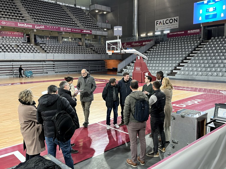Una delegación andorrana visita el pabellón Barris Nord, interesada por conocer su nueva iluminación