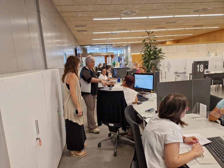 La teniente de alcalde de Bon Govern, Carme Valls, ha visitado hoy la Oficina Municipal de Atención Ciudadana, (OMAC), para saludar al personal de este servicio de atención directa a la ciudadanía y conocer de primera mano el día a día de la unidad que, el próximo mes de agosto, garantizará el servicio y atención, con normalidad, a cualquier persona que lo necesite, por la vía que lo desee. La OMAC atiende de forma mixta con cita previa y sin ella. Siempre se recomienda consultar la web municipal en la Carpeta ciudadana .
