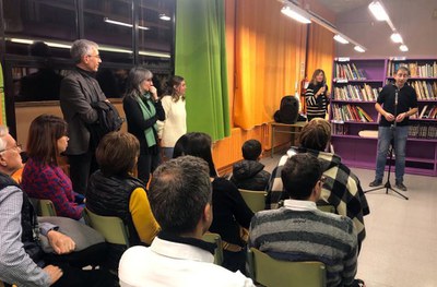L'alcalde, Miquel Pueyo, la tinent d'alcalde, Jordina Freixanet, i el director general de Localret, Andreu Francisco, abans d'iniciar-se la presentació.